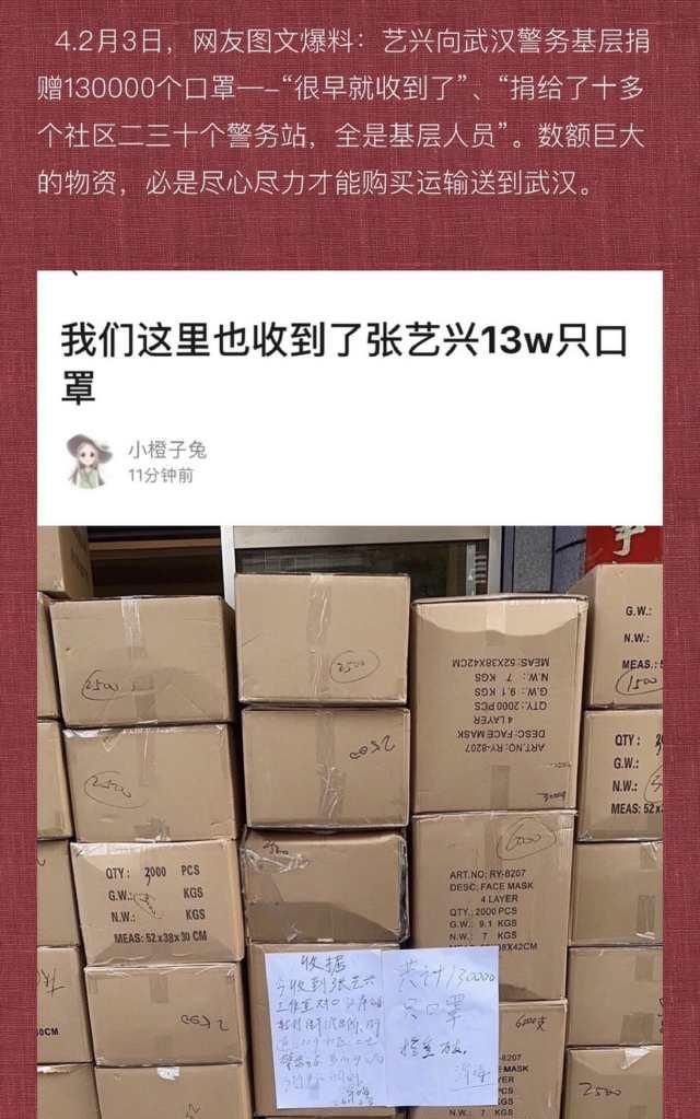 以下是各个地方收到张艺兴捐赠的口罩发布的消息,看到这一大箱一大箱只有满满的感动,这些都是抗战在一线的人员最及时最实用的东西啊!