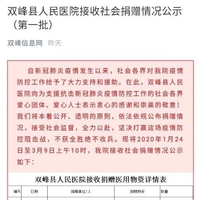 而前两天,双峰信息网公布的社会捐赠公示中,“东阳横店张艺兴影视工作室”捐赠了2000只KF94口罩!张艺兴闷声做好事又被发现了。