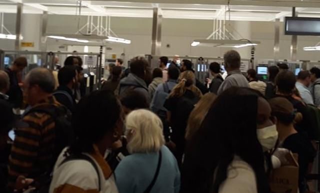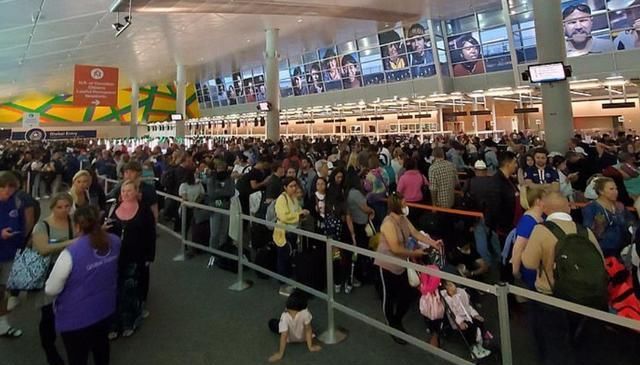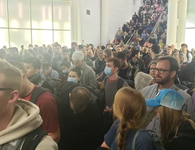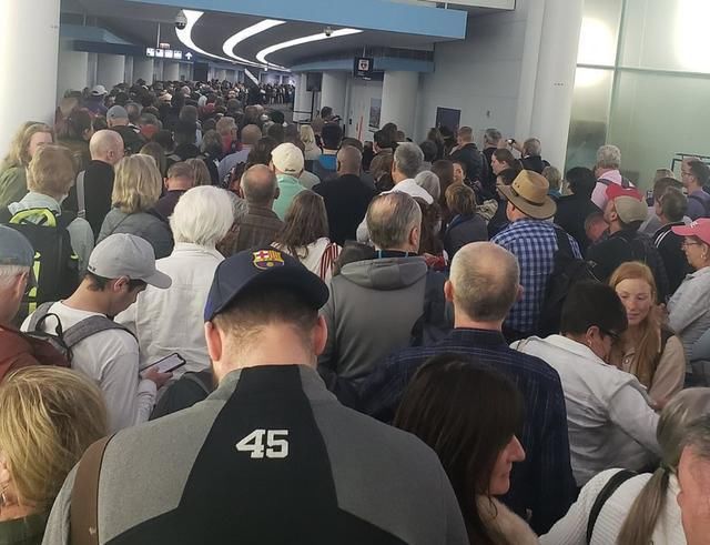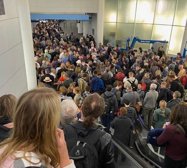 在芝加哥奥黑尔机场,可以看到人们在走廊和自动扶梯上排长龙,因为乘客们得健康检查。达拉斯/沃斯堡机场也出现了类似的情况,乘客们要等上几个小时,许多人只能坐在地板上等待。